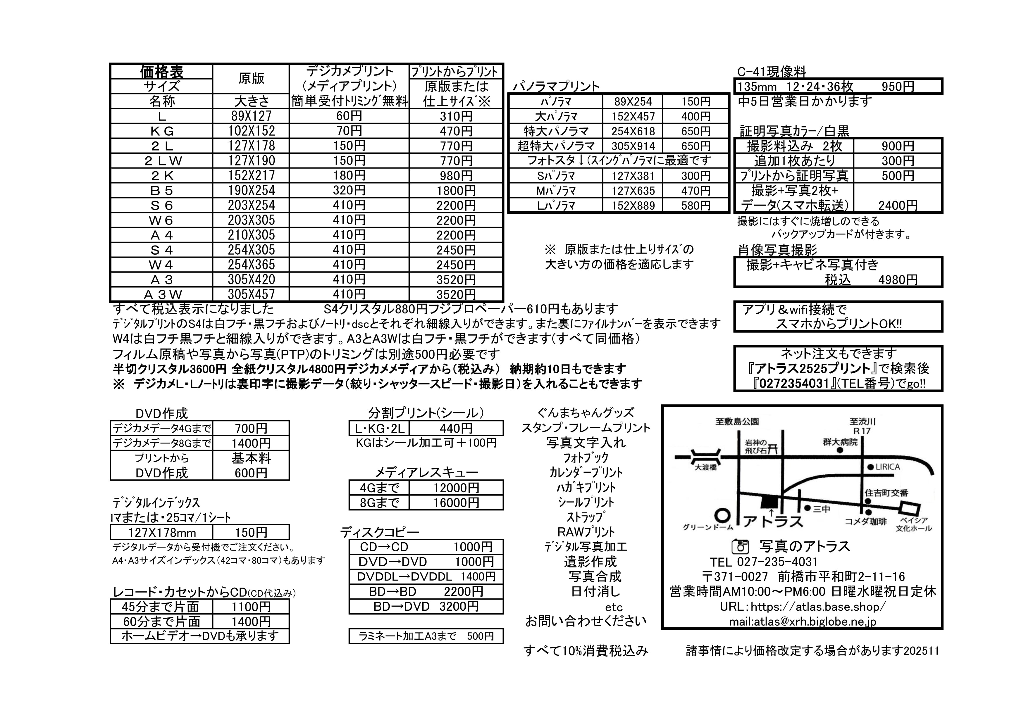 写真のアトラスは群馬県前橋市の写真プリントと撮影のお店です。